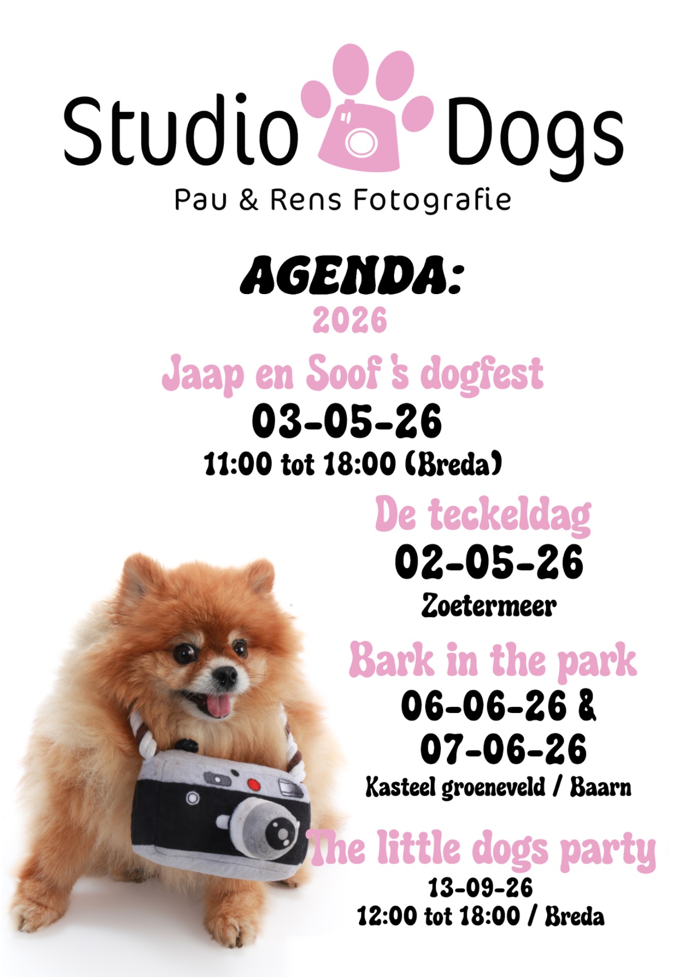 Naast de studio zijn wij het hele jaar door ook te vinden op verschillende hondenevenementen en fairs. Dit is een perfecte gelegenheid om kennis te maken met onze fotografie én een mooie herinnering van jouw hond vast te laten leggen.